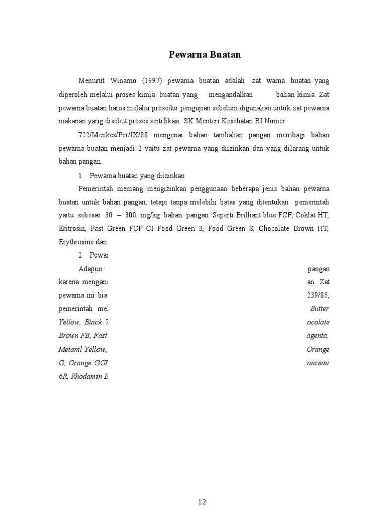 Zat Pewarna Buatan Disebut Juga / Skripsi Analisis Kandungan Zat Pewarna La Ifu D1c1 I Skripsi Analisis Kandungan Zat Pewarna Sintetis Rodamin B Pada Sambal Botol Yang Diperdagangkan Di Pasar Modern Kota Kendari Pdf Document : Sebagai contoh penggunaan zat pewarna pada makanan dapat terlihat pada.